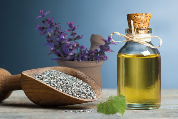 Chia oil is produced by mechanical pressing of oily Chia seeds. The chia plant, which is called Salvia hispanica in Latin, belongs to the mint family and originates originally from southern Mexico and northern Guatemala. Under optimal conditions, it can grow well over a meter high. The plant has violet-white flowers, and its small, oval, grey-brown seeds are high in fatty acids. The oil's content of the omega 3 fatty acid alpha-linolenic acid (ALA) is over 60%. Due to the high fatty acid content, the extraction of the oil requires no solvents. The oil is therefore cold-pressed and subsequently filtered to remove impurities.